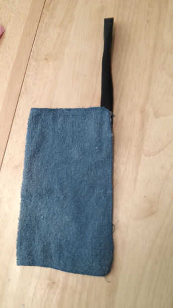 Después se cose el gancho, cosieron la parte inferior de la tela. Esto creó un pocked con una abertura lateral y una tapa de apertura para que mi mano y pata del cachorro pueden ser en el interior del bolsillo al mismo tiempo, flexibilidad.