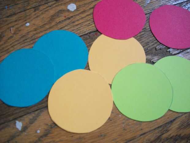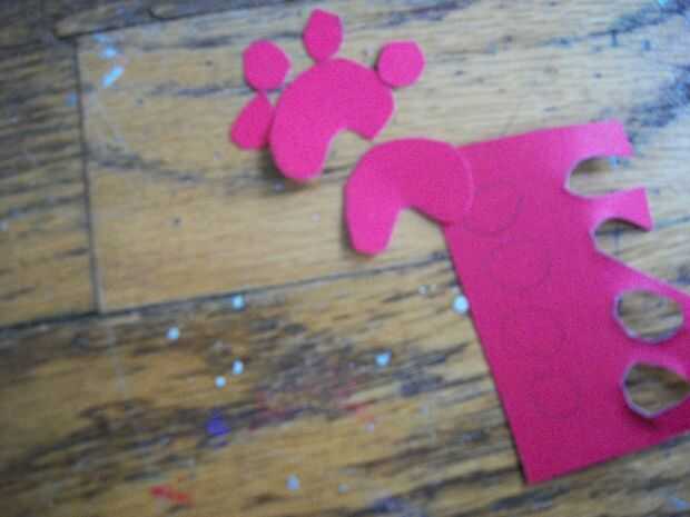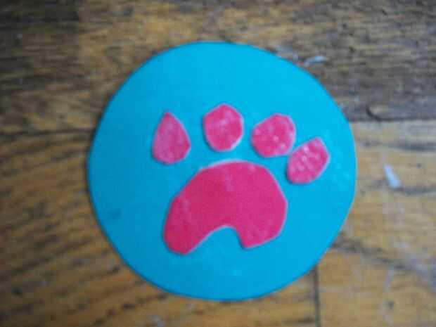 Para comenzar, traza algunos círculos en la cartulina de color, cortar hacia fuera y guárdelos. A continuación, utilice tijeras para cortar la pata imprime y montarlos juntos en un círculo común de tarjeta con pegamento pegajoso.