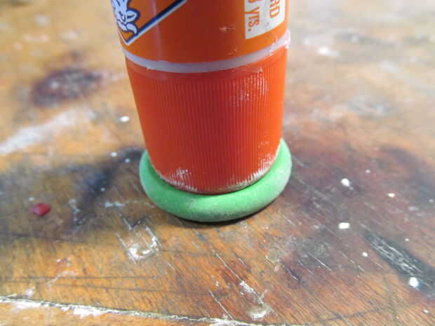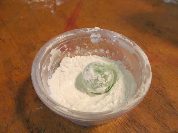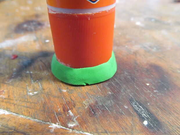 La forma se hace de la arcilla del polímero. Después de amasarlo que rodé en una bola. Cubrió en fécula de maíz para evitar que se pegue. Entonces tomó un palo de pegamento y puré la bola plana. Empujé los bordes hacia en forma de un pequeño muro.
