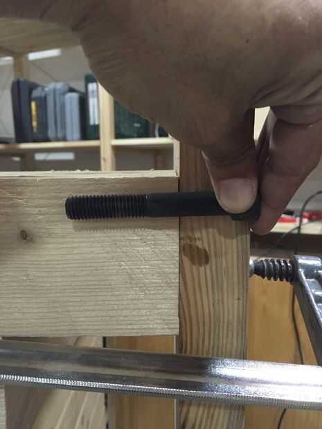 El primer paso es la elección de la mesa sobre poste de madera de la pierna y después de su opción del perno M12 de sujeción, marca el final de la rosca útil. Llamemos a esto "la primera línea".