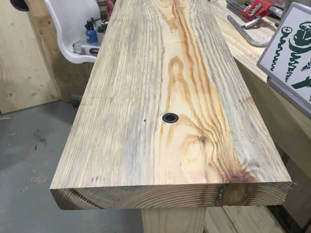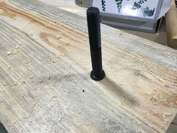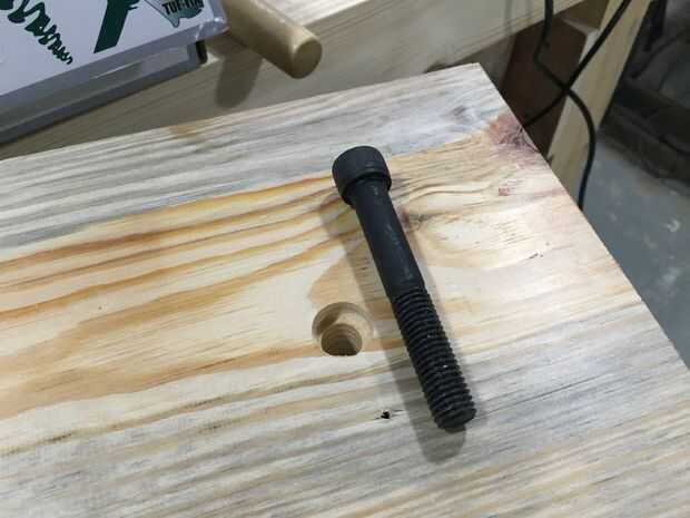 Hacerlo y en caso de que usted quisiera el perno M12 a aclararse con la superficie de la mesa, luego desnudo en cuenta que ajustando el perno que comprime la madera, por lo tanto, el agujero pero dejando al menos 1mm de los tornillos que sobresalen. De esta manera, cuando usted apriete el perno a toda su fuerza, saldrán con la superficie de la tabla.