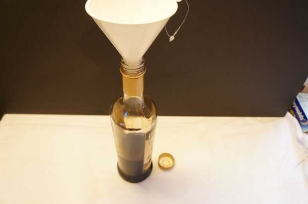 Usando el embudo Vierta la mezcla en el frasco esterilizado y colocar la tapa en.