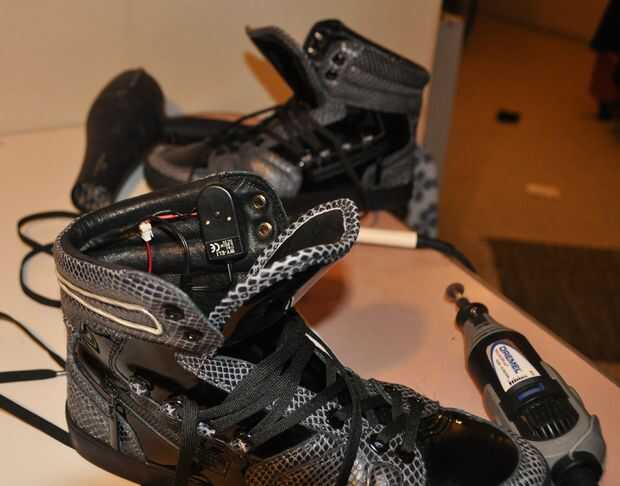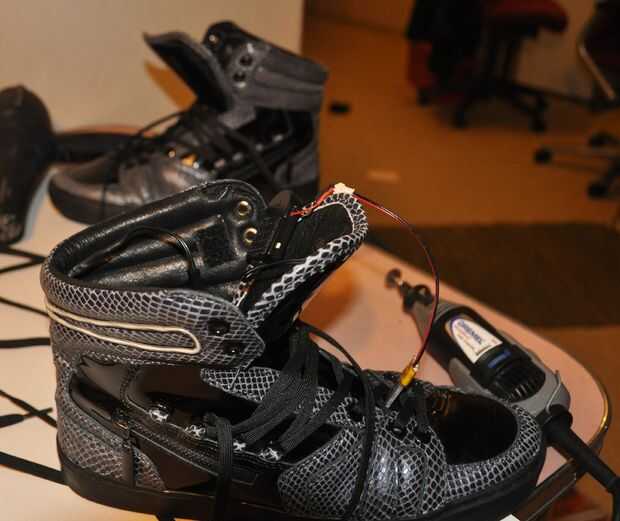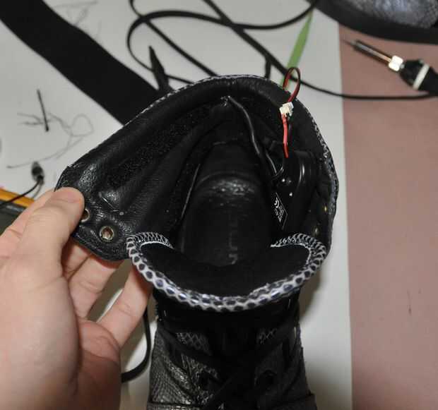Para conectar el inversor, usé velcro trasero pegajoso. sostiene el inversor muy firmemente y no creo que caerá en uso. Para mantener todos los cables y la batería fuera de daños, hice un parche con elástico ancho y más velcro trasero pegajoso. La parte posterior adhesiva que velcro no atenerse a la elástica muy bien, así que terminé tener que coserlo.
