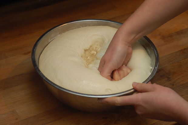 3. Coloque la masa en un bol, cubrir con film transparente ligeramente aceitado y dejar en un lugar cálido a elevarse por sobre y hora o así.