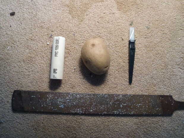Antes de empezar a recoger los suministros. Encontrar una patata, arte / hobby cuchillo, raspador y un 4-6" pieza de tubería de 1".