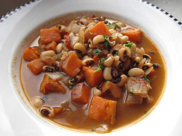 Patata dulce picante y guisantes eyed negro! (5 / 5 paso)
