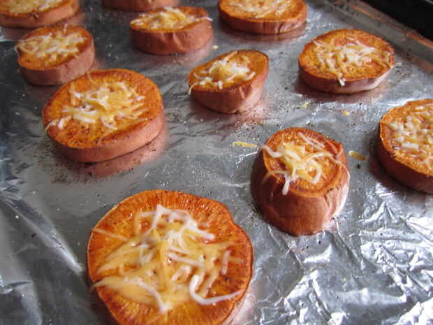 Espolvorear un poquito de tu queso preferido en las rondas y ponerlos en el horno durante un minuto o dos - tan el queso se vuelve agradable y melty.
