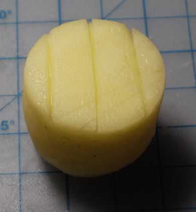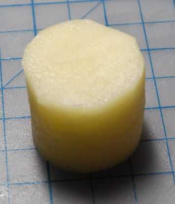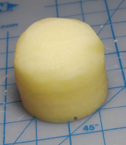 1. Cortar cuatro 1" ancho, 2" de alto cilindro de la potatoes.* usted puede conseguir más de uno fuera una patata, pero terminé necesaria para utilizar el centro para conseguir una pieza de tamaño decente.