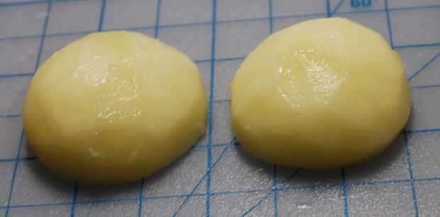 7. Para Pac-Man, usted sólo necesidad dos medias esferas.  Si eres capaz de tallar una esfera perfecta patata y dividir, que sería lo ideal, pero una superpotencia extraña.  Tuve que cortar dos piezas separadas y hacerlos cerca de una esfera cuando se ponen juntos.