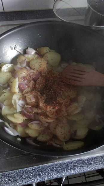 Si estás poniendo especias en la carne añadir a las patatas!
