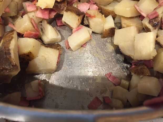 Cocinar las papas, descubiertas, hasta que no haya mucho mantequilla en el fondo de la sartén.