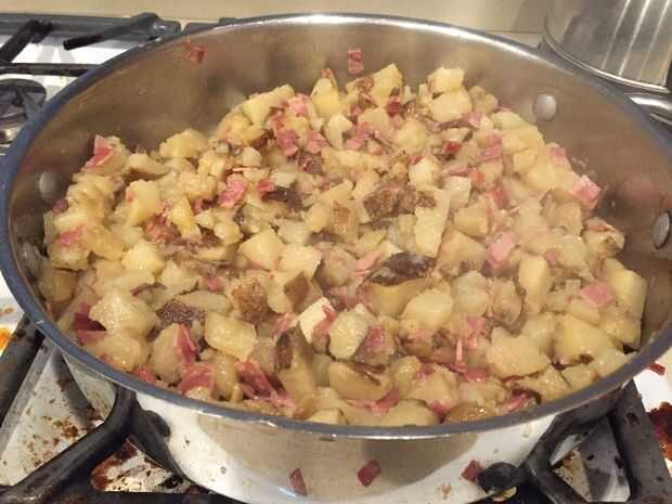 mi abuela hizo un espectacularmente sabroso pero oh tan malo para usted ensalada de papa, mi mama lo hizo por muchos años con un par de cambios saludables en el camino y ahora estoy cambiándolo todo, volver a gramos preparación pero usando al horno "