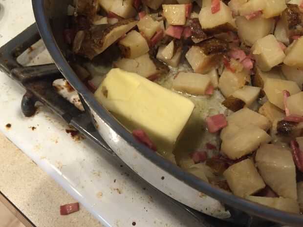 Fundir la otra mitad de la mantequilla, luego a fuego lento y cocinar, destapado, durante unos 9 minutos. Luego apagar el fuego