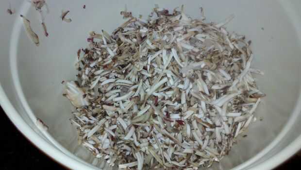 Rallar una patata y tres setas. Picar la patata y setas restantes.