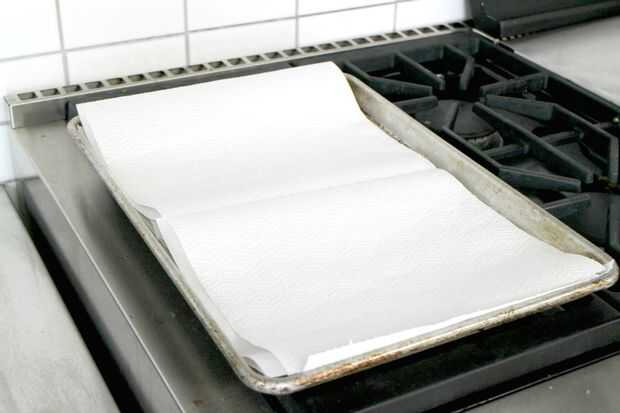 Preparar un lugar para poner las papas recién fritas para drenaje, como una bandeja para hornear o tabla de cortar. Línea 3-4 capas de papel absorbente y reservar.