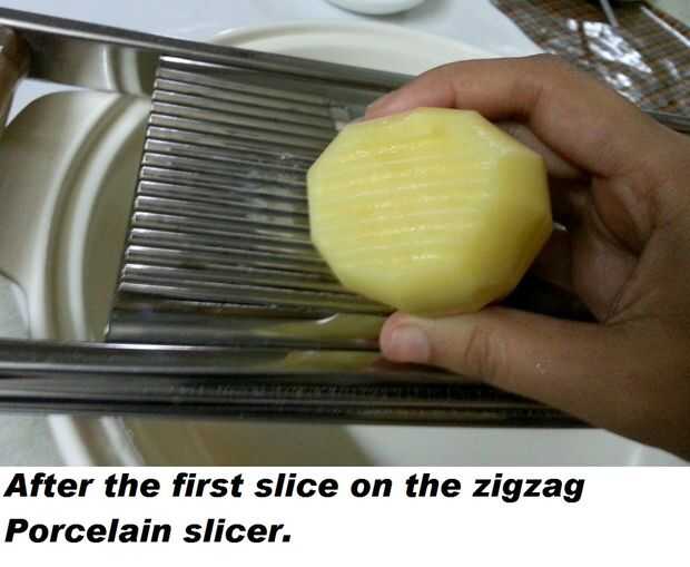 También tratar de mantener las rodajas como delgadas como sea posible si no te no tendrá un patrón comprobado limpio, además de los cortes más delgados convierten crujientes después de freír.