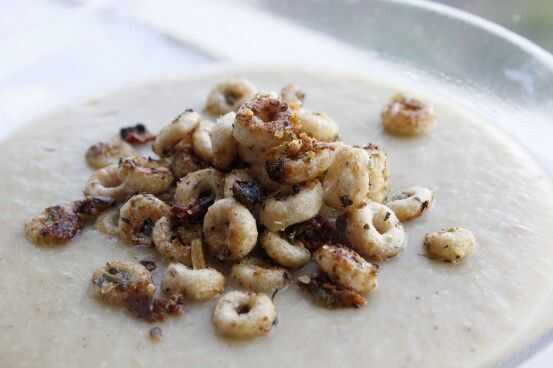 Picatostes se hacen cuando el queso se haya derretido y las cheerios se tuestan. Salpique su sopa!