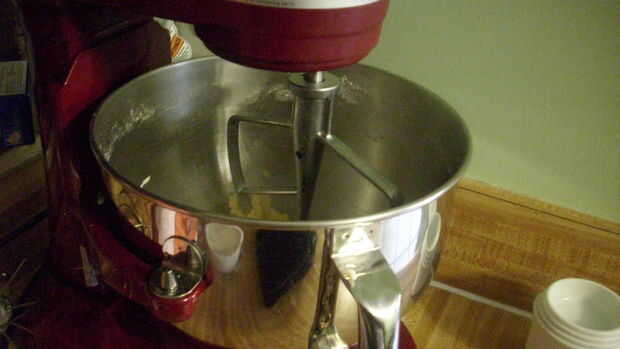 Apagar su estufa y coloque la masa en el recipiente de la batidora o en un recipiente limpio para mezclar por una batidora de mano. Use un accesorio de pala y empezar a batir la masa. Dejar la batidora por 5 minutos. Desea que la masa enfriar lo suficiente para que al agregar los huevos, las proteínas de los huevos no agarran.