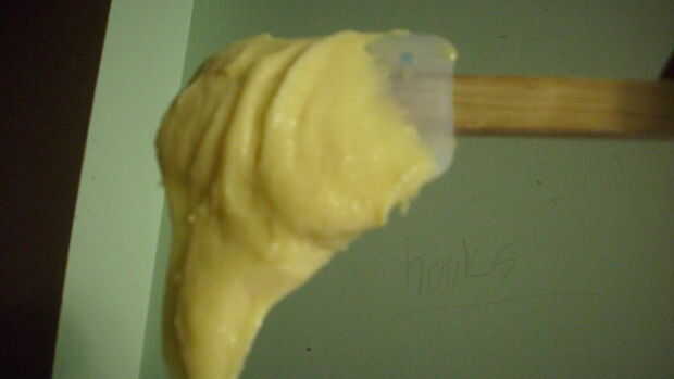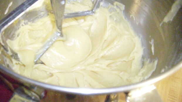Ver tu choux, debe empezar a suave como masa de pastel y palillo a los lados del tazón de fuente. Parar la batidora y raspar hacia abajo los lados antes de agregar el último huevo. Cuando se ha combinado el último huevo, apague su mezclador y siento en tu masa. Debe ser pegajoso pero no caliente. Si la masa se rompe y se ve irregular cuando trabajas algunos entre los dedos, limpiar el tazón de fuente y agregar un huevo más. Mezclar hasta incorporar. Será mirar brillante y todavía pegajoso pero debe tener tramo un poco más y fluyen a él.