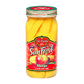Mi tienda actualmente no tiene mango fresco, usé mango cortado, enlatada. Un tarro de 24oz rindió aproximadamente el 1.5 tazas que necesitaba. Un contenedor de 16oz de fresas frescas me dio mi 1,5 tazas de fresas hechas puré, por lo menos lo hizo después de lanzó a varios por ser demasiado maduro.