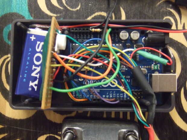 a continuación, tienes que poner toda su electrónica en el caso de Arduino plástico. Este caso puede caber fácilmente la Aruino el 9V como una gran cantidad de cableado. En la foto el interior de mi caja protectora. Con la electrónica en este cuadro no sólo mantendrá la electrónica juntos en un solo lugar, pero también hará que los componentes electrónicos están protegidos mientras viaja. Hubiera podido cortar pequeños agujeros en el lado de la caja de plástico para que los cables que necesitan salir de la caja tienen una salida sin ser aplastados por la tapa de la caja. También aconsejo grabar este cuadro cerrado para que usted no tiene que preocuparse por abrir y derramar toda la electrónica mientras que usted está montando.