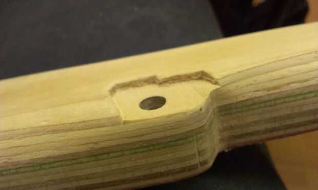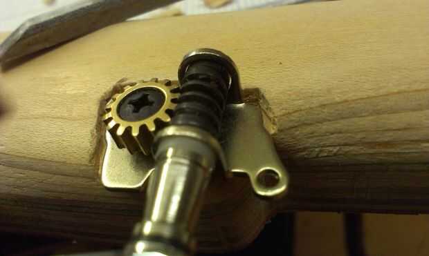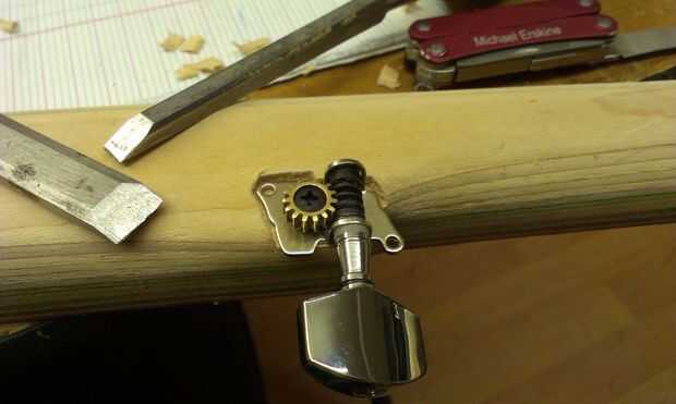 Cincelado a cabo sobre 2 capas un poco profundo para que la cadena de pieza de la bobina fue lo suficientemente alta (la 5 tuerca de cadena también será bastante bajo perfil). Un poco de lijado a mano y parece aceptable. El montaje completo de la 5 º marcha de sintonizador cadena requiere una curva de ese segundo tornillo a sentarse contra el cuello.
