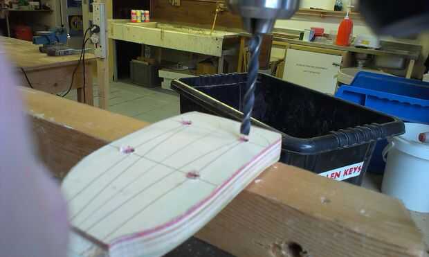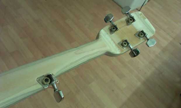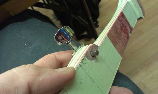 Taladrar los orificios para las clavijas de afinación era bastante simple. Agonizando ligeramente sobre el afinador de cuerdas 5 pero creo que subió con una solución agradable que no me requiere la bifurcación hacia fuera £12 para obtener un peg especializado. Me decidí por una hundida peg casi la profundidad del cuello.