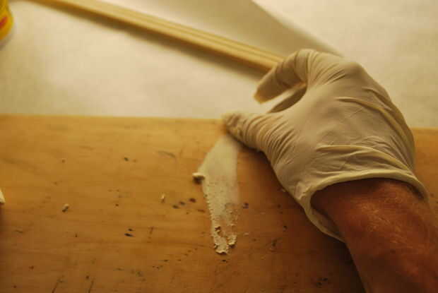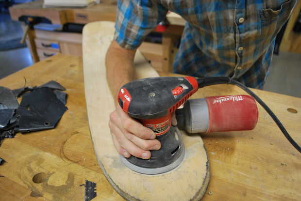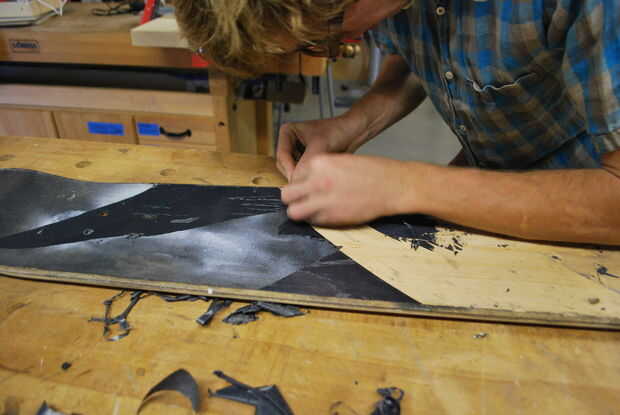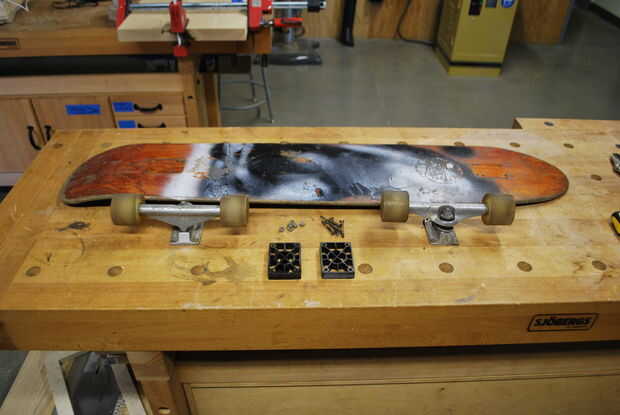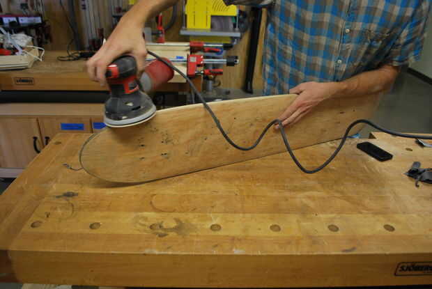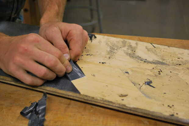 La preparación de la Junta Directiva empezó con quitar los carros y las ruedas. A continuación, me quitó la cinta de agarre y lija en ambos lados.