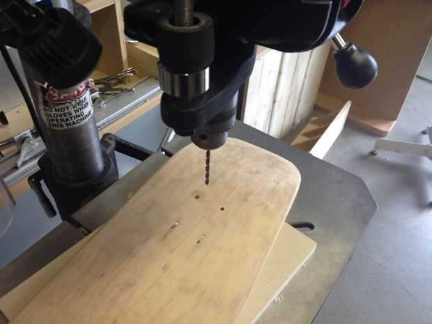 Como dije en un paso anterior, es importante utilizar un montón de pegamento que lamina de la Junta. Uno de los inconvenientes de esto es que los agujeros para sujetar los carros llegan lleno de pegamento. Usé un taladro para volver a perforar estos agujeros entre cada paso de laminación.