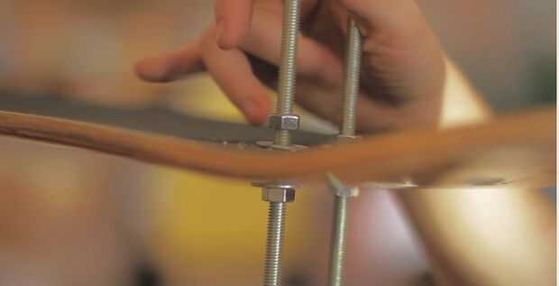 Atornillar 4 más nueces al otro lado y deslice el patín hacia ese lado. Bajar alrededor de 7 pulgadas.