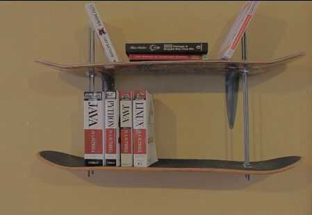 Finalmente, fije a la pared y llenarlo con tus libros favoritos!  Mostrar el arte en la parte inferior de sus antiguo cubiertas de skateboard y disfrutar de la admiración de tus amigos.