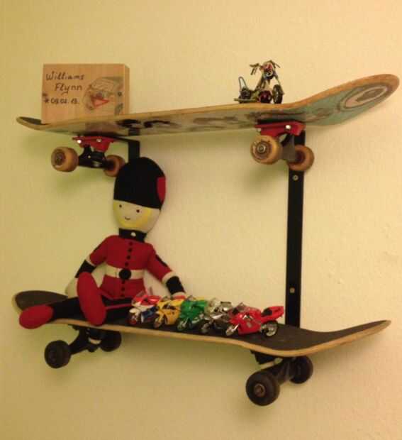 la estantería de patín se puede hacer desde cubiertas de skateboard nuevo o viejo. Con un poco de tiempo puede tener una estantería ajustable altura aseada que hará que tus amigos envidiosos.Perfecto para el dormitorio o como un presente para tu pati