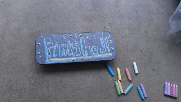 Cuando hayas terminado tenga cuidado a soplar flojos pedacitos de tiza - usted no quiere los para marcar el lugar cuando la empuñadura hace lugar en la parte superior. Cuando termines vuelve a aplicar la Plaskolite y a ir!