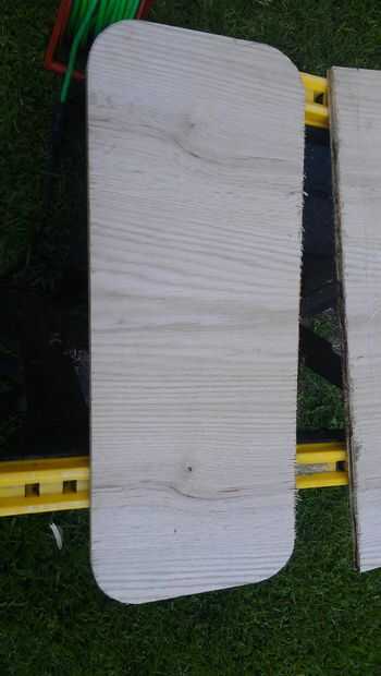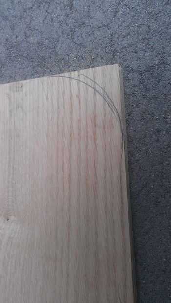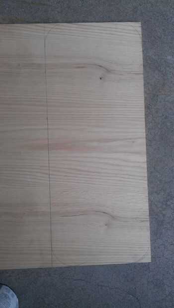 Marqué una porción rectangular de la madera que serviría como la cubierta de mi tabla. Usé una lata de pintura para obtener curvas limpiamos en mis esquinas. Si dejas los ángulos perfectos de 90 grados a obtener astillas y rotos y realmente feo. Aceptar el hecho de que la placa se venció hacia arriba y alrededor de los bordes.