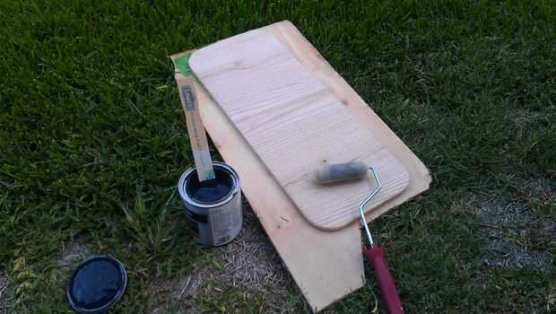 Hacer varias capas de espesor, incluso. La lata dice imprimar la superficie primero que es probablemente una buena idea. Terminé saltando este paso porque sentí la chapa sobre la madera contrachapada era bastante lista. Sin embargo, si la madera no se acaba con una chapa como mina, usted debe definitivamente hacer esto!