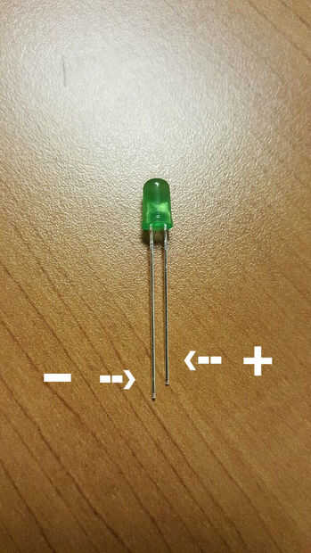 Al mirar el LED, aviso que el metal conduce que se extiende desde la punta de color son diferentes longitudes. El cable más largo se llama ánodo y tiene una carga negativa. Este cable va conectado al lado positivo de la batería. El cable más corto se llama cátodo y tiene una carga positiva. Este cable se conecte al lado negativo de la batería.