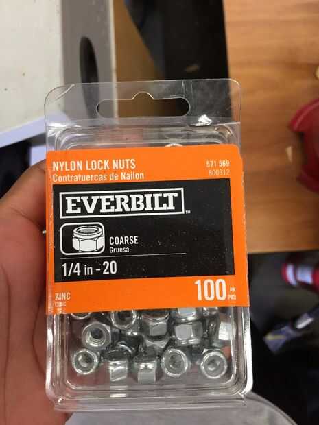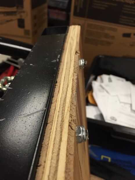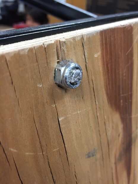 Ahora para los agujeros, van a necesitar sus 3 tornillos de 1/4 pulg y sus tuercas de 1/4 pulg. Lo que necesita hacer es tomar el taladro, luego encontrar la broca adecuada y perforar el metal. Esto le llevará un tiempo! Utilice el ajuste con un torque alto. Una vez que Taladre los orificios en el metal, alinee la Junta y perfore a través de la Junta para que el tornillo se deslizan suavemente a través de los agujeros. Gire la tuerca en el tornillo para que el tablero de madera esté bien conectado. Si el tornillo es mayor que el tablero de madera, use una dremel para cortar el exceso.