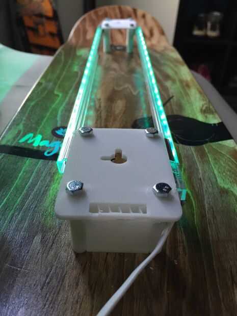 Hoy es el último día de la clase 'Fablab hacer' por lo que la semana pasada redondea mi diseño final. Primero empecé con el láser de corte y cortar un pie más grande que fue capaz de soportar el peso de la Skate. Después de que corte un "Anti Slip Mat" (no sé la traducción en inglés) para crear más agarre en la superficie. Durante las clases regulares, también tuve la oportunidad y tiempo para volver a imprimir los titulares de patín, en la que hice unos ajustes de diseño. Utilicé una pistola de pegamento para unir los clips para sostener la iluminación LED. Ahora llegó el momento de montar todas las piezas para ver si funcionaría. En Resumen me di cuenta de los pies de las normas de orden no era lo suficientemente fuerte... Por suerte había estos pies cortados dos veces, así que para hacerlos más fuerte pegan los dos pies uno al otro y sí, sé fueron capaces de soportar el peso de la Skate sin la aparición de la torsión. Ahora sabía que el estándar trabajado, decidí pintar con una lata de aerosol que tenía puesta alrededor. Ver las fotos del proceso y el prototipo final.