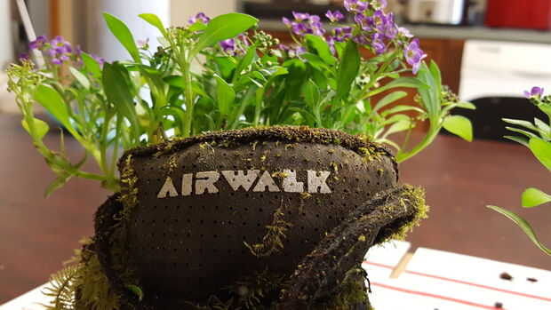 Estos eran grandes zapatos. Me ató juntos hace un tiempo y sólo arrojó un árbol. He notado cierto crecimiento en ellos y tuvo que poner unas flores en ellos. Estos zapatos me dieron genial Skate y ahora son givingt hacia el mundo mucho después de que desapareció el uso que se hicieron para. Ellos simplemente seguir adelante.