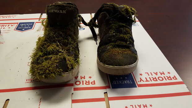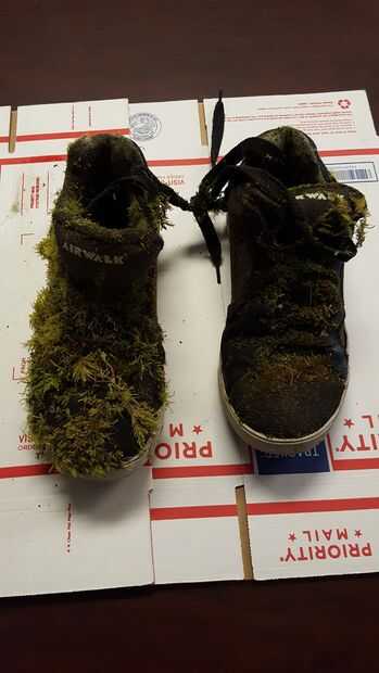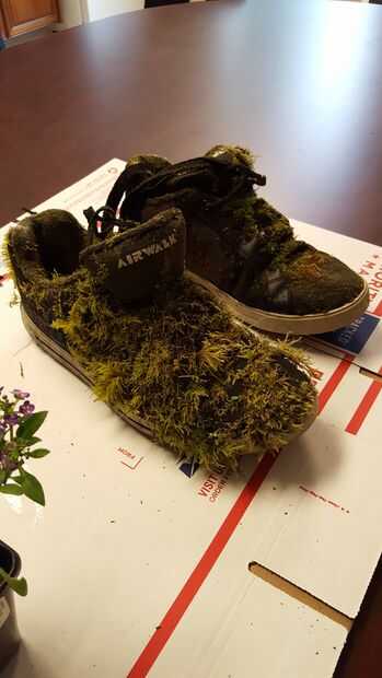Tomó los zapatos abajo del árbol. Mirando para ver lo que hay que hacer antes de los bancos en macetas.