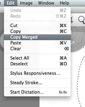 Realmente no quiero dibujarlos otra vez, así que voy a copiar el trabajo que acabo de hacer y lo editamos! Utilizo la herramienta lazo para dibujar alrededor de mi obra. Luego ir a Edición -> Copiar combinado. Esta opción copia todo, como veis, en una capa!