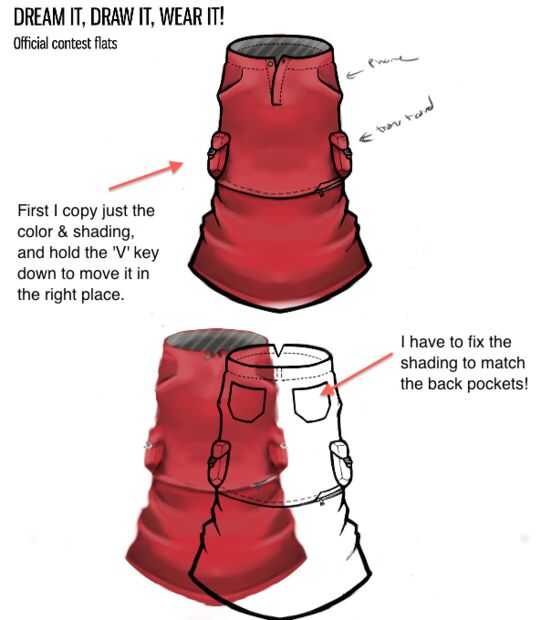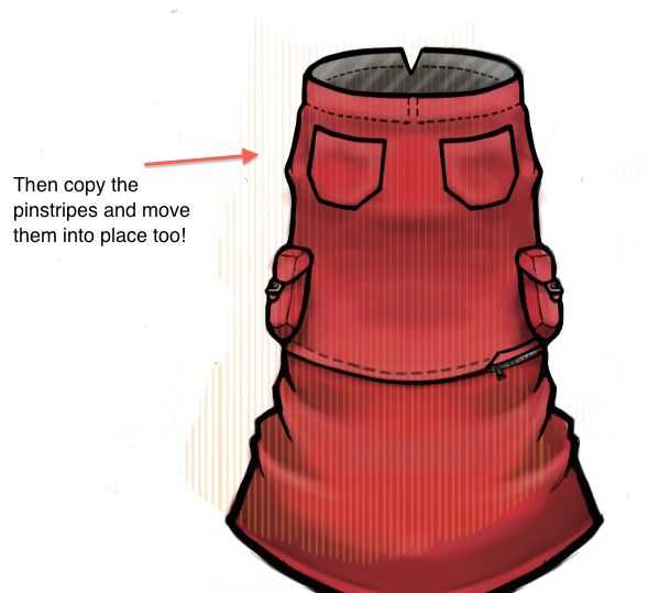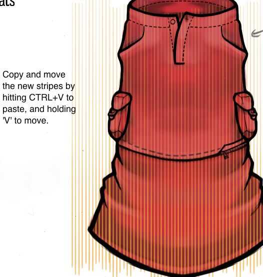 Para la parte trasera de los pantalones, te copia el color que ya trabajé y pegarlo. Voy a copiar el color y las rayas por separado porque el sombreado debe ser fijado para los bolsillos traseros.