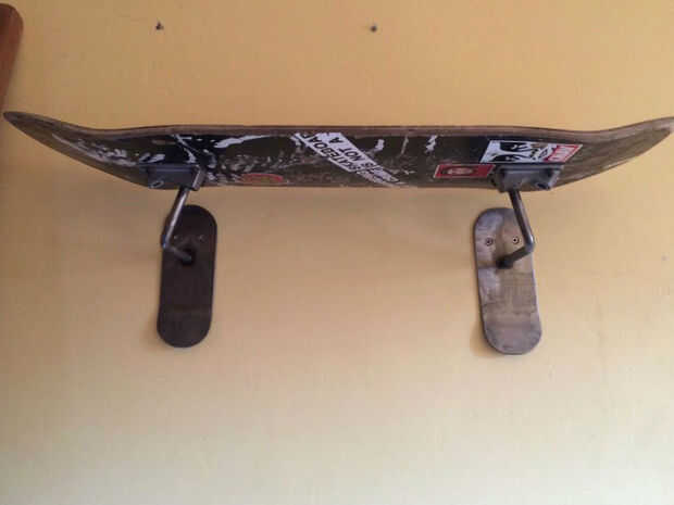 Mi hijo recientemente retiró su patineta, que solía ser mío y fue originalmente dado a mí por un Skater que utilizó en un recorrido de X-Games, por lo tanto, tiene historia, y quería hacer un estante de ella, en lugar de lo chatarra o tenerlo pudrir en un armario.