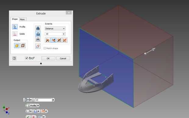 Este paso es opcional si tu impresora tiene un gran suficiente imprimir volumen para hacer el arranque de una sola pieza. Si no usted tendrá que decidir en un buen lugar para dividirlo. Decidí dividir justo después del segundo conjunto de agujeros de montaje. Para hacer esto necesita crear un nuevo dibujo en el avión que quieres dividir tu bota en. A continuación dibujar un un gran rectángulo (o círculo) que si se ve desde el frente, con la punta de la bota, apuntando totalmente encierran el arranque. Haga clic en 'Finalizar boceto' y para sacar la forma al lado de la bota que desea eliminar. Asegúrese de que en el menú de extrusión que se selecciona la opción eliminar material en lugar de crear una nueva forma sólida (tutoriales de control para su programa de CAD averiguar cómo hacerlo). Ahora tienes una sección de la bota que puede imprimir!