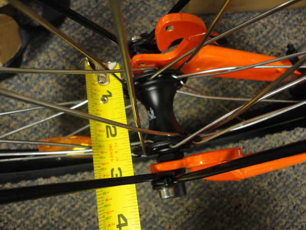 Para obtener el conjunto hemos querido encontramos una rueda trasera del tamaño correspondiente en bicicleta de un niño y básicamente cortar toda la mitad posterior y lo invertido. Esto mantiene la cadena y rueda trasera perfectamente trabajando juntos así que realmente no tenemos que reinventar el mecanismo de transmisión.