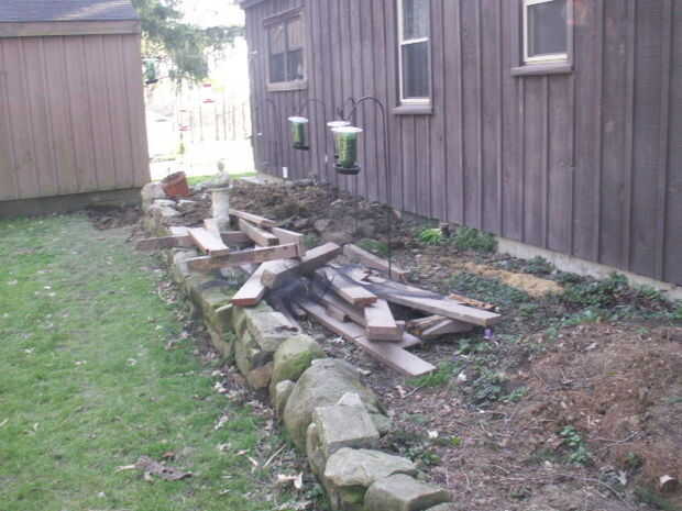 que tomaron algunas placas y una caja del tamaño de la plaza donde el patio va a ser. Entonces establecidos los tableros y clavó juntos, en un marco de cuadro. Estos tableros son aproximadamente 10 pies de largo y una pulgada de espesor y 6 pulgadas de ancho.