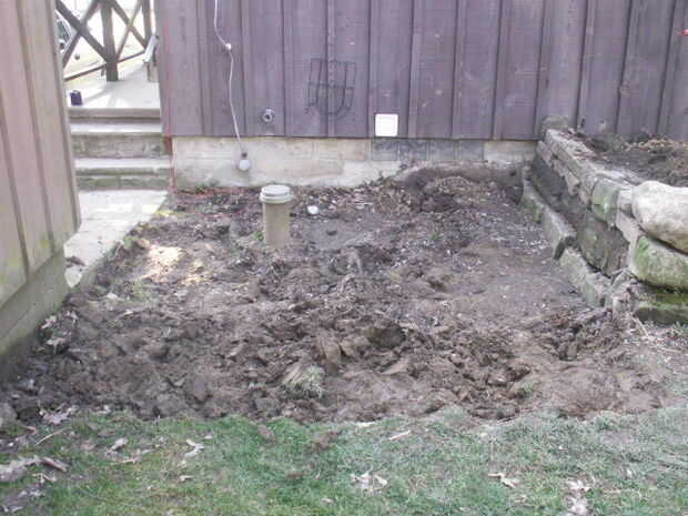 Y excavación comenzó cavó abajo unas dos pulgadas, entonces tiene mi tamper y comencé a empújelo hacia abajo entonces consiguió un rastrillo de acero y rastrillado por cualquiera de las cosas pierde, entonces golpear plano.