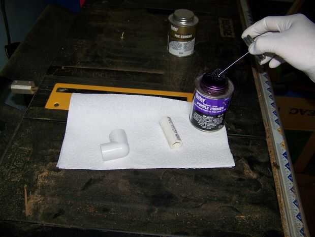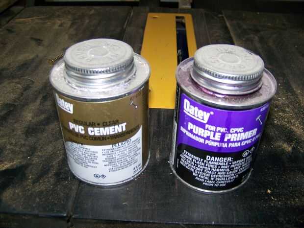 La última cosa que necesitará es imprimador y cemento de PVC. Compré las latas más pequeño de los que pude, y hay suficiente ahí que me dure hasta que el sol.