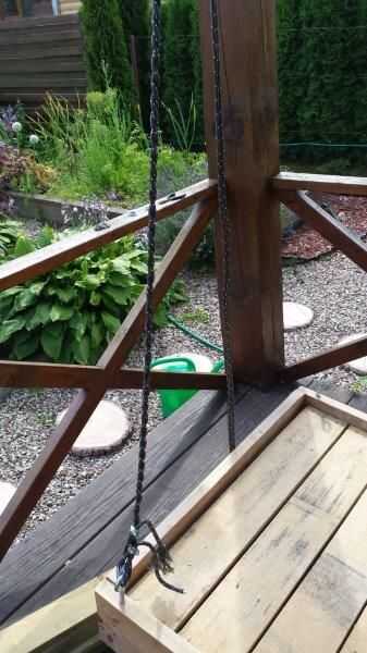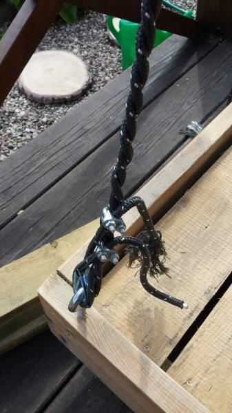 3. mi esposa no le gustaba el aspecto de una cadena de hierro, por lo que utilizamos cuerda semi-plástico para mantener el artilugio todo en su lugar.
