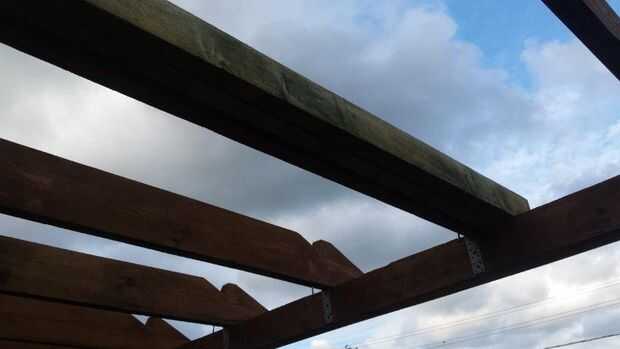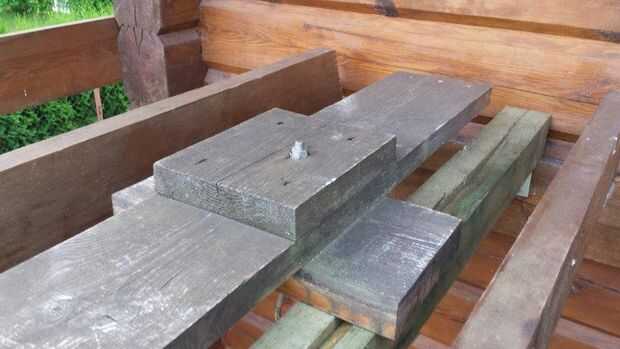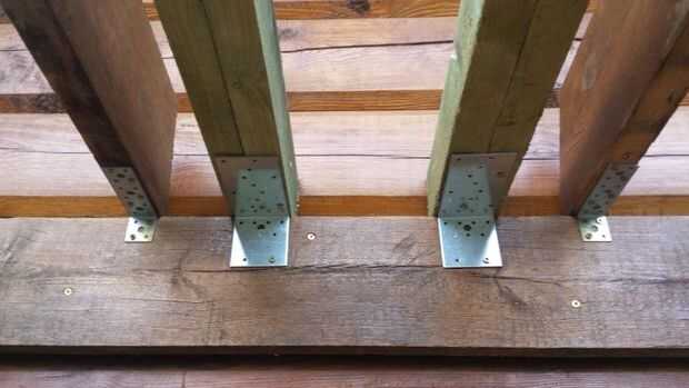 1. tenía postes de madera de 5 x 10 cm. Pares atornillados de ellos juntos, que hace 2 x 10 x 10 cms titulares.